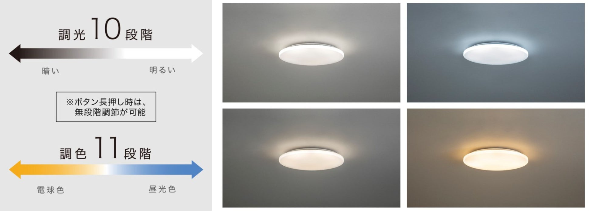 【調色段数】11段階(ボタン長押し時、無段階(常夜灯含まず))