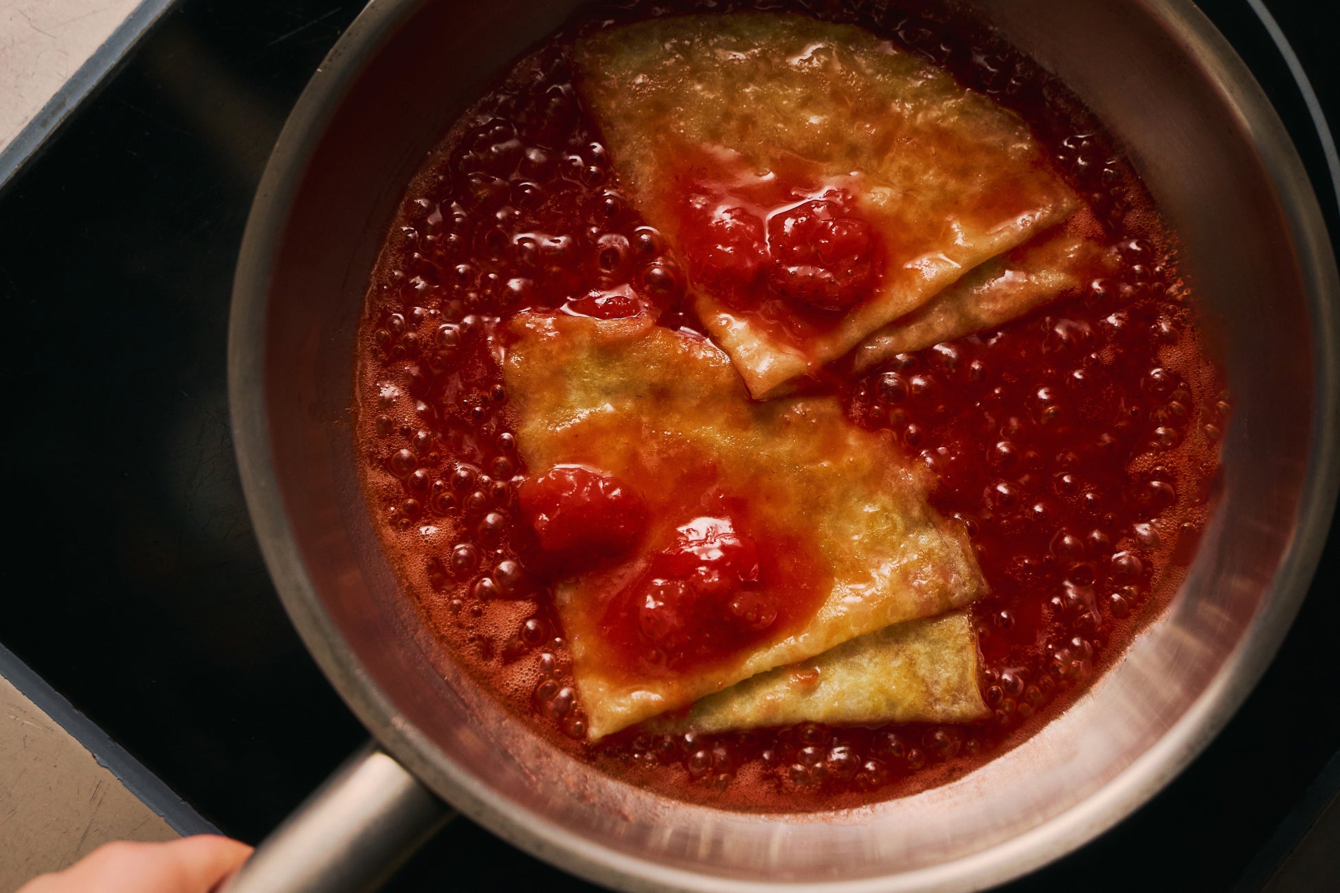 ブランドいちご5種と目の前で仕上げるクレープシュゼットで甘いいちごの香りに包まれる