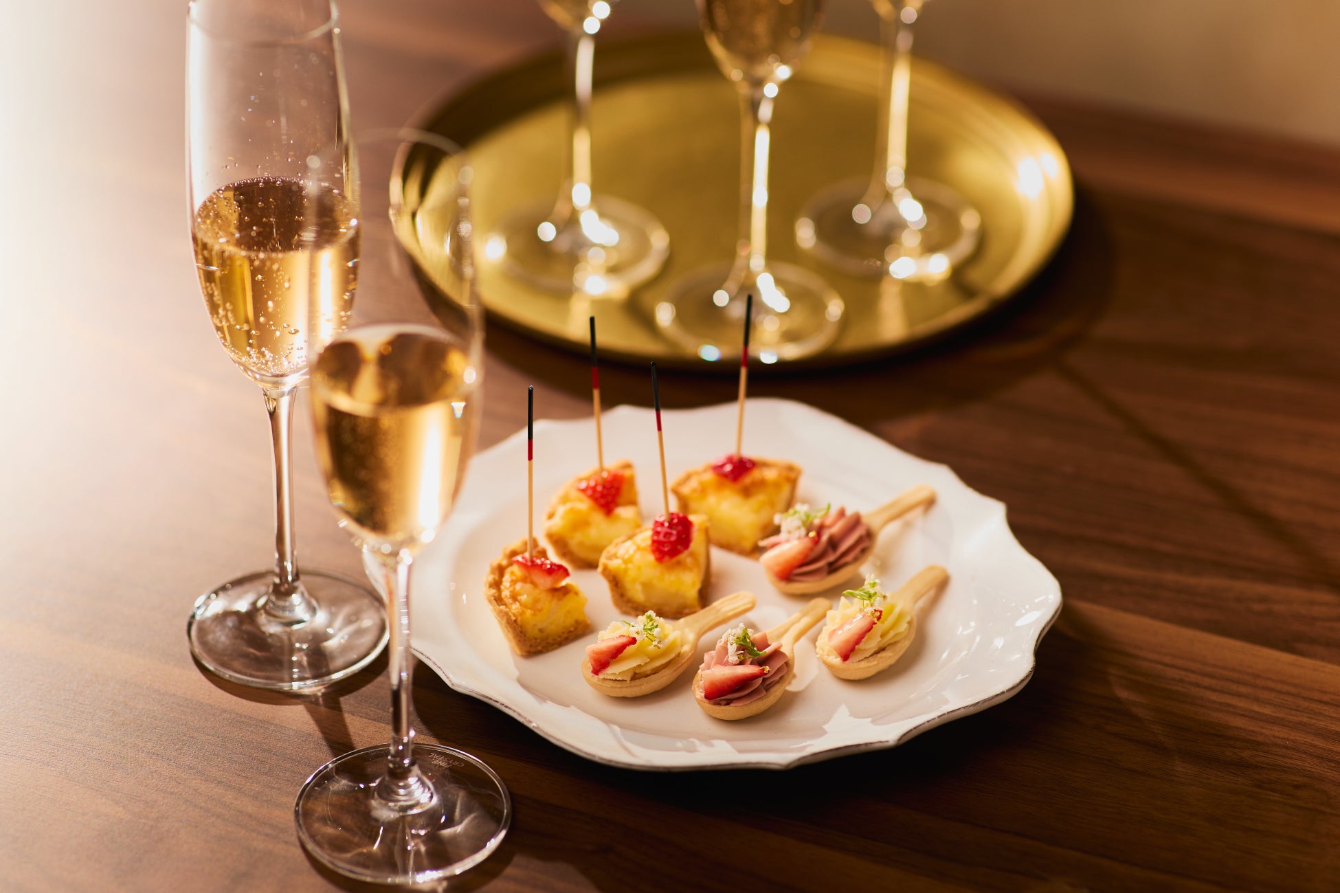 新章を刻む「All Day Dining La Jyho」が贈るストロベリースイーツパーティーの始まりは、期待感を盛り上げる、ウェルカムドリンクとフィンガーフードをご用意してお迎えいたします。