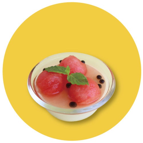 なめらかな食感が特長の杏仁プリンの上に夏を感じるすいかをコロンとトッピング!