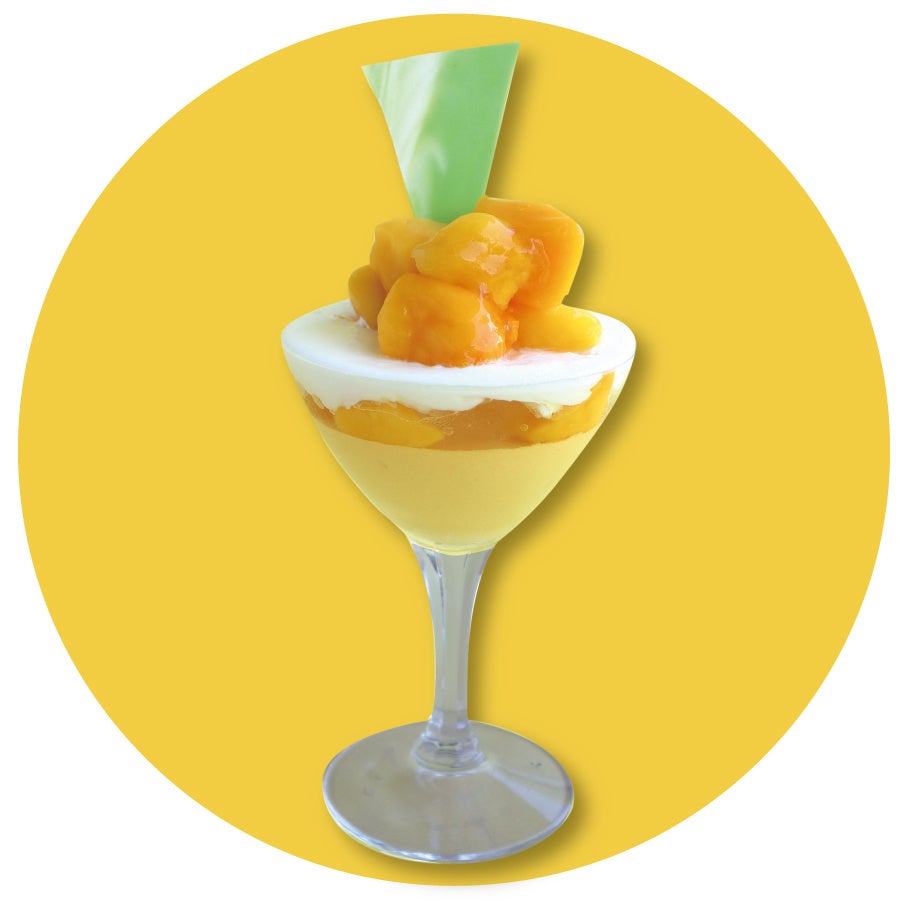 トロピカルな夏をイメージしたパフェ。ゴロッとマンゴー果肉と生クリームの層の下になめらかな口当たりのマンゴームース。マンゴーを満喫!