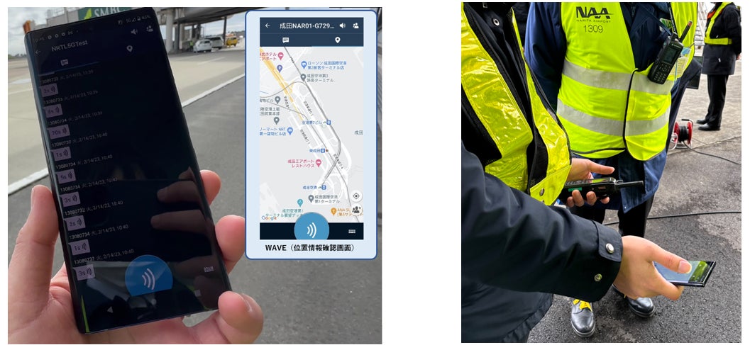 <ローカル5G対応スマートフォン上のWAVE> <WAVEとTETRA端末通信試験模様>