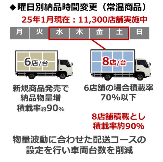 ・曜日別納品時間変更(常温商品) 25年1月現在:11,300店舗実施中