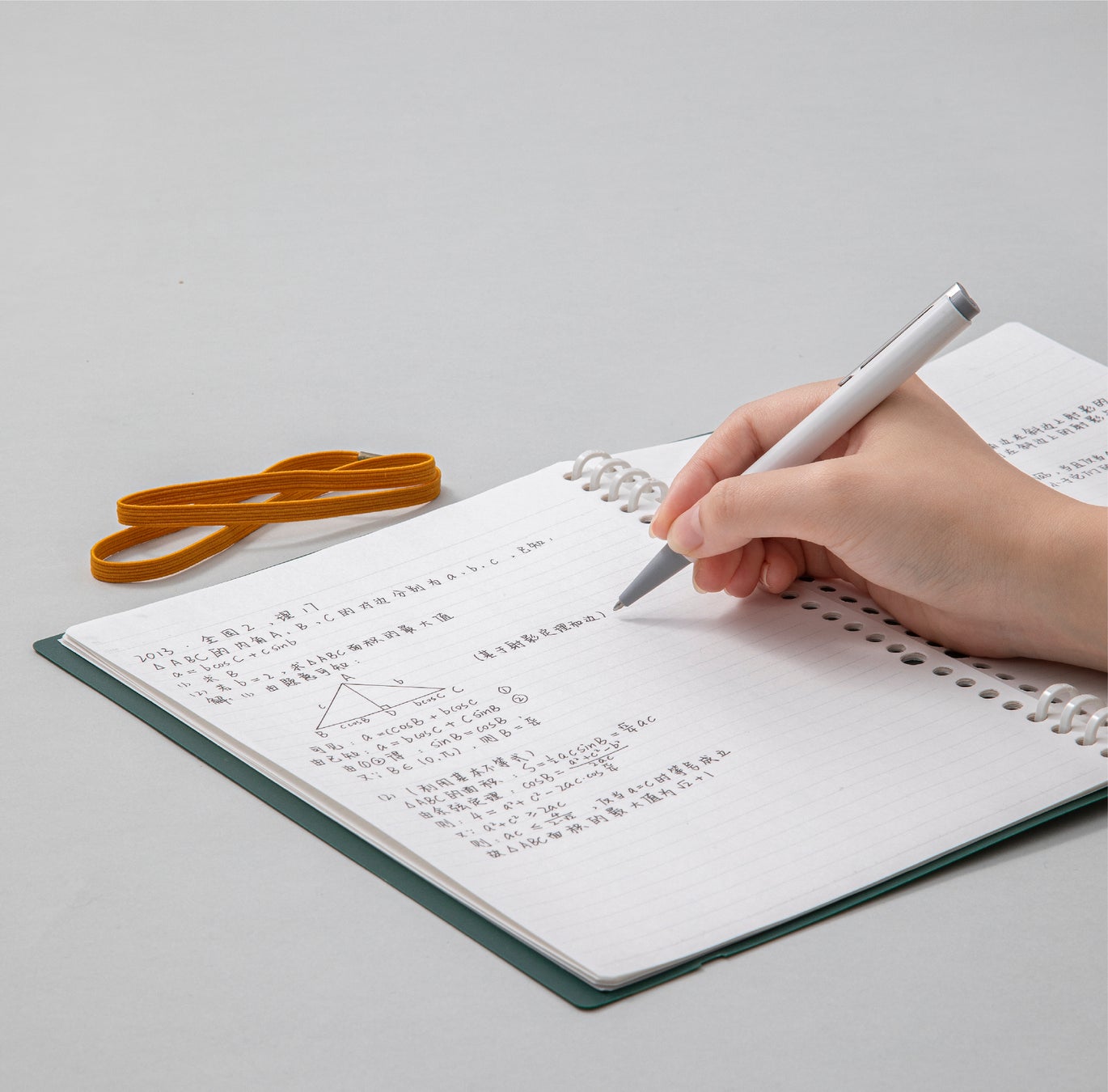 独自開発の"上下セパレート式リング"を採用し、リングに邪魔されず、ストレスなく筆記できます。また、リングが開閉するので、ルーズリーフの追加・差し替えが可能です。市販のルーズリーフが使用できます。