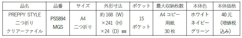 ■「PREPPY STYLE 二つ折りクリアーファイル」製品仕様