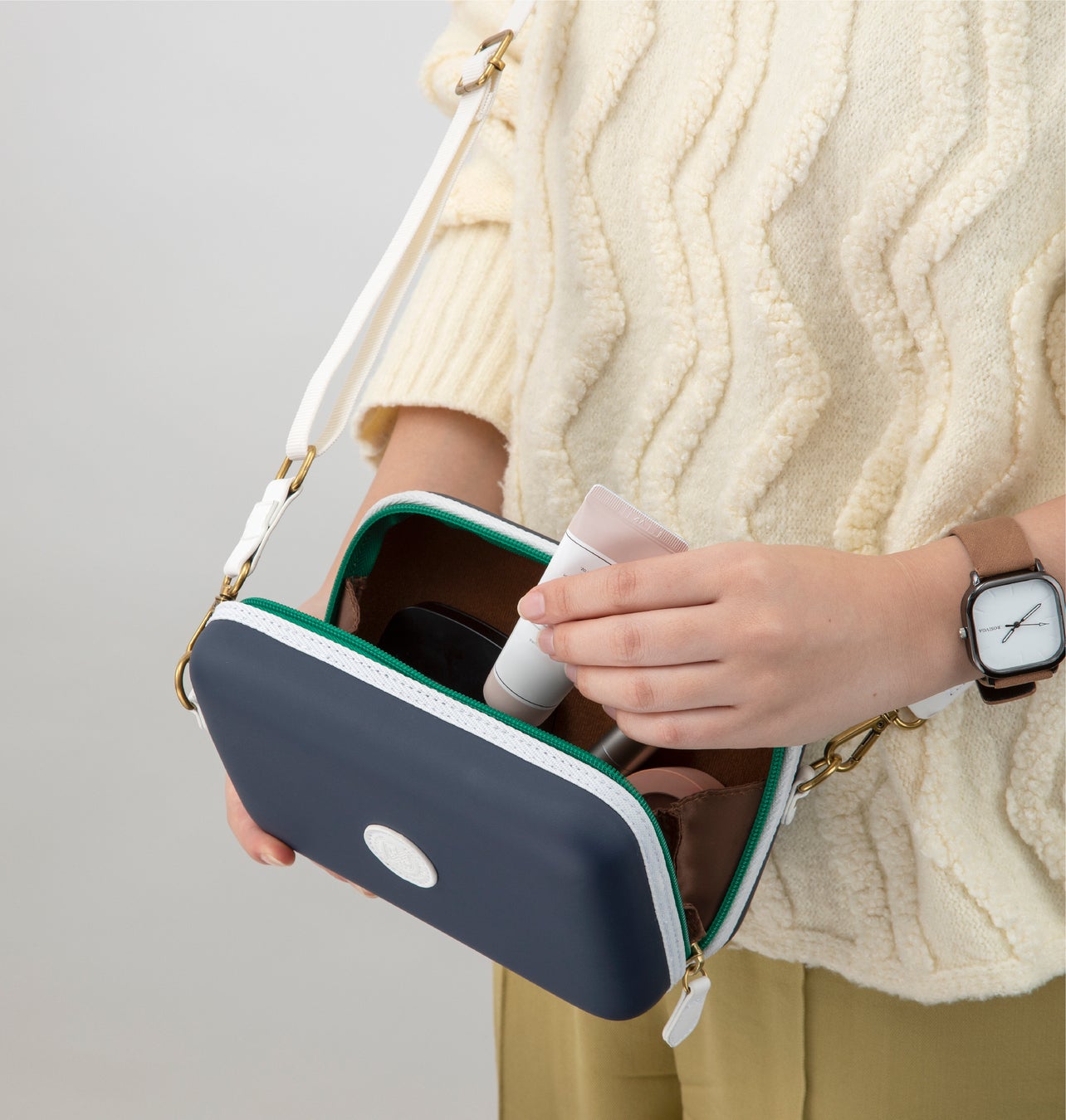小物類をまとめて持ち運べるキャリングポーチです。日本で販売しているキャリングポーチ「カルシェット」をベースにしています。