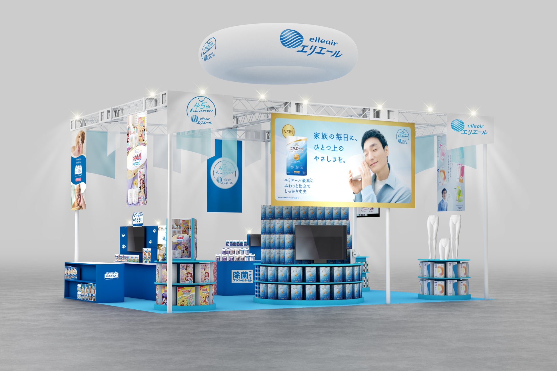エリエールブランド誕生45周年を迎えた本年は、タレントの草彅 剛さんを起用したトイレットペーパーの新商品「Theエリエール」のビジュアルをアイキャッチに、展示商品を実際に触って品質を体感いただけるブースを展開します。