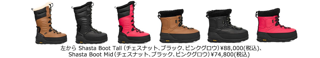 Shasta Boot Tall(シャスタ ブーツ トール)は、マイナス32度の寒さまで耐えられる防寒性を持つ高性能なテクニカル機能と高い快適性、マキシマリストのスタイルを融合させたプレミアムブーツ。高品質の防水レザーを使用し、防水性と透湿性を兼ね備えたGORE-TEX®レイヤー、キャンバス地の履き口には、リサイクルされたポリエステル・フェザーレス・ダウンを詰め、シャフトを立てて着用することで防水・防寒性をより高めてくれます。シャフトを折り曲げて短くして履くことも可能。内部はUGGのシグネチャーであるUGGplush™ブレンドで仕上げられ、ソフトで心地よくUGGならではの肌触りを実現。再生可能なサトウキビを使用したサステナブルなミッドソールに、Vibram® ICETREKアウトソールで、滑りやすい路面でもグリップ力が高く、凍った路面でも安心して履くことができます。ハイカースタイルのスノーブーツShasta Boot Mid(シャスタ ブーツ ミッド)は、高品質の防水レザーとGORE-TEX®レイヤー、Vibram® ICETREKアウトソールを採用し、履き口と内側はブランドのシグネチャーであるUGGplush™ブレンドで仕上げられています。