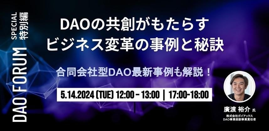 5月14日には、ガイアックスが持つ合同会社型DAOの知見をアップデートしたDAO FORUM特別編セミナーを開催します。当該分野でのビジネス等での活用をご検討の方にとって有用な情報をお届けします。