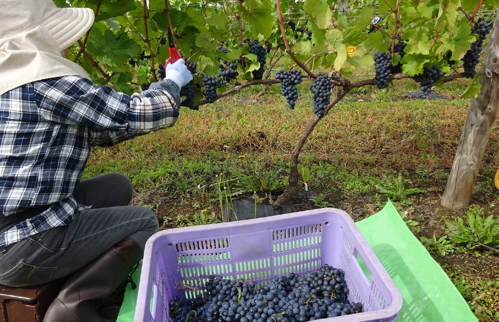「多田ワイナリー」は、農園で野菜作りをおこなっていた代表・多田氏が、人と人との偶然の出会いが重なって2007年よりピノ・ノワール品種のブドウ作りをスタート。栽培には化学肥料は一切使用せず、有機質肥料や微生物資材などを少量使用しているほか、除草剤は一切使用せず、すべて手作業で除草や草刈りをおこない、農薬の使用も最低限に抑えるなど大切にブドウの木を育てています。ワイン造りは、実は"7~8 割が農業"と言われるほど、畑での仕事が大きなウエイトを占めており、代々農業と向き合ってきた多田氏の、徹底したワイン用ブドウ造りが、他にはない味わいを生みだしています。