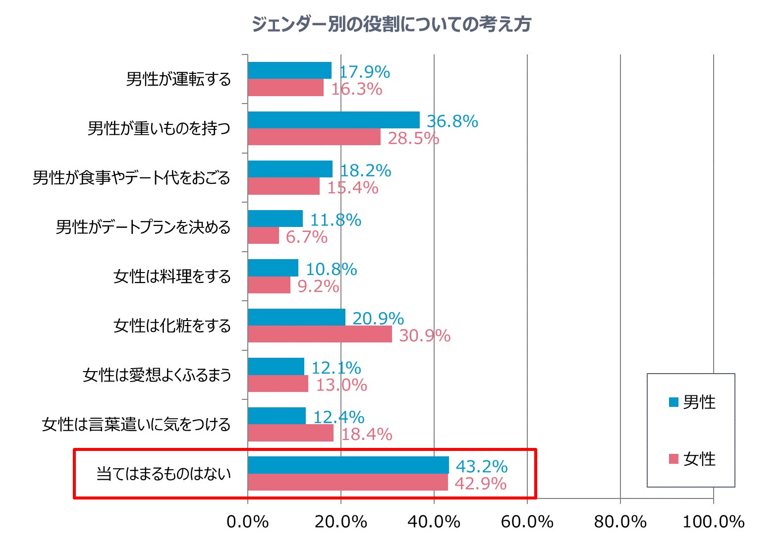 ~「男性が重いものを持つ」「女性は化粧」といったジェンダー別役割意識を持たない婚活世代~