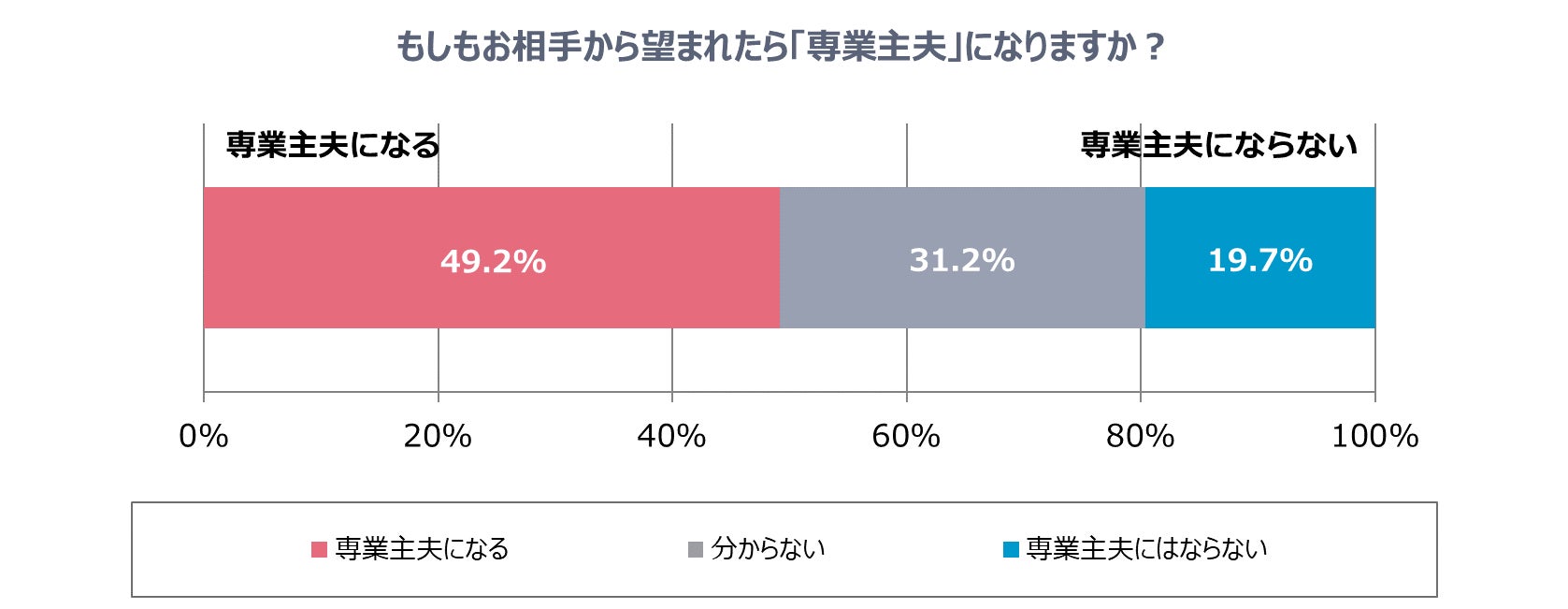 「専業主夫になる」と回答した人は49.2%、「専業主夫にはならない」人は19.7%でした。