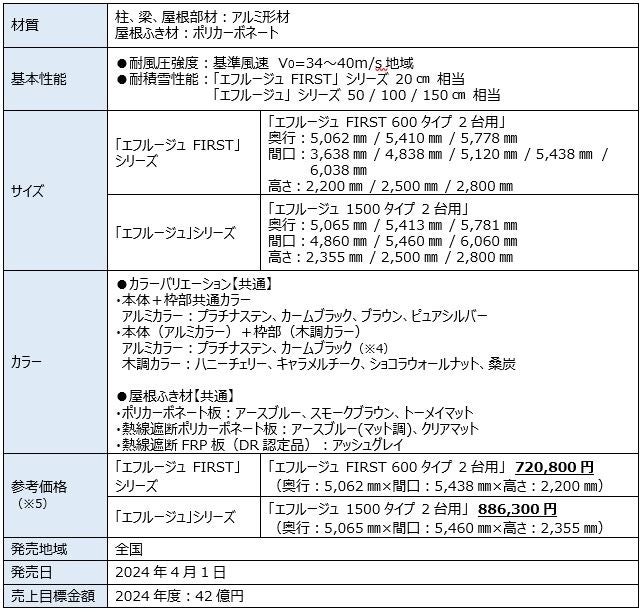 屋根下空間の開放感・明るさを向上。より広い駐車スペースの確保を実現カーポート 「エフルージュ FIRST」 「エフルージュ」 「ジーポート Pro」 シリーズを拡充