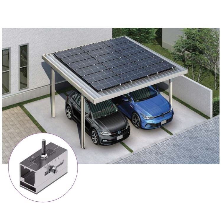 「ジーポートPro PV」に新たなソーラーパネル取付金具を設定。汎用金具のため国内外の主要メーカーのソーラーパネルが搭載可能です。取付金具はルーフボルトに固定するシンプル施工で、スチール折板を貫通しないので漏水リスクを低減できます。