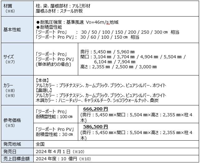 また2022年よりカーポートに関する建築基準法が一部改正され、従来の確認申請の範囲内で200㎡以下まで設置が可能となり、大型サイズのカーポート提案の幅が拡大しました。さらに脱炭素化の取り組みとしてソーラーパネル搭載のカーポート市場が拡大しており、再生可能エネルギー事業の支援制度を活用した企業・自治体の大型カーポートの採用物件が増加しています。これらの需要に対応するため、高い耐風圧強度&耐積雪性能を備えた「ジーポート Pro」シリーズの一部大型サイズの仕様を改良し、間口延長・間口連結時の2本抱き合わせの連結柱を1本化しました。従来に比べて広い駐車スペースが確保でき、使い勝手の向上とすっきりとした見た目を実現します。またソーラーパネル搭載カーポート「ジーポート Pro PV」に複数メーカーのソーラーパネルが搭載可能な汎用金具を設定。提案力を高めて多様化する大型カーポートのニーズに応えます。