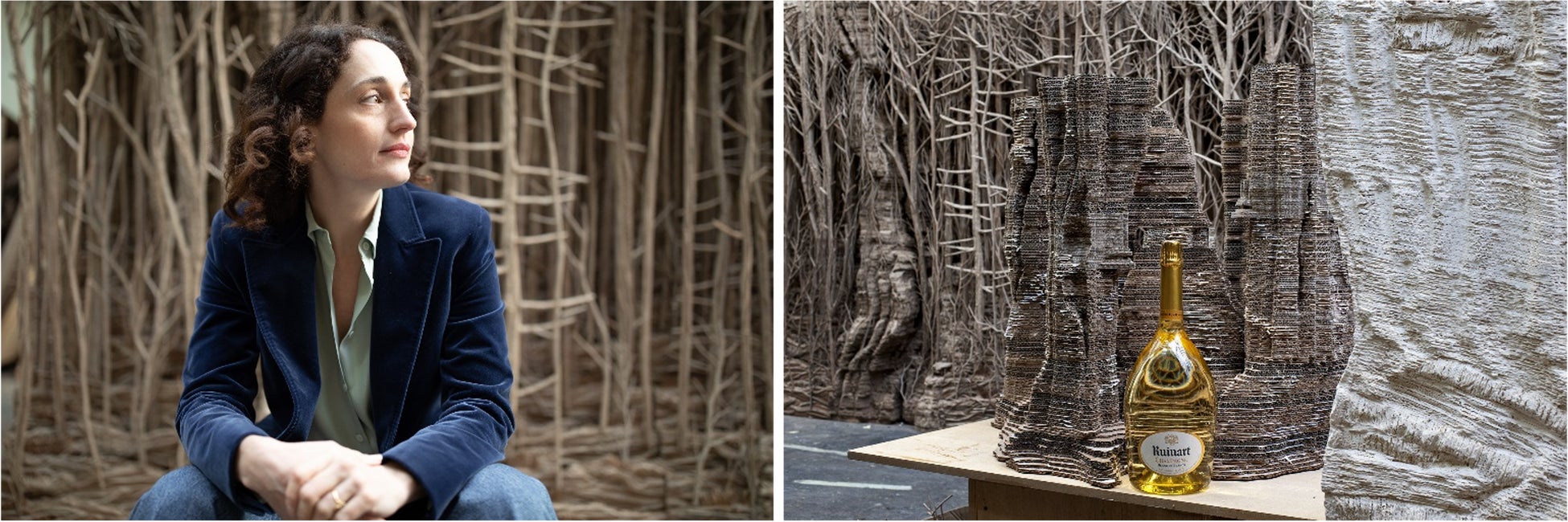MHD モエ ヘネシー ディアジオ株式会社(東京都千代田区神田神保町)の取扱いシャンパーニュ メゾン ルイナールは、毎年メゾンのテロワールやヴィジョンを世界的アーティストと共有し作品を完成させるコラボレーションプログラム「カルト・ブランシュ」を行っています。2023年の「カルト・ブランシュ」参画アーティストは、パリを拠点に活動するアーティスト、エヴァ・ジョスパンです。彼女は、作品づくりとシャンパーニュづくりの両方に通ずる、動作と時間の積み重ねの大切さを、カードボードや浮き彫り、ドローイング、刺繍など様々な手法で構成されたインスタレーションによって表現するユニークなアーティストです。