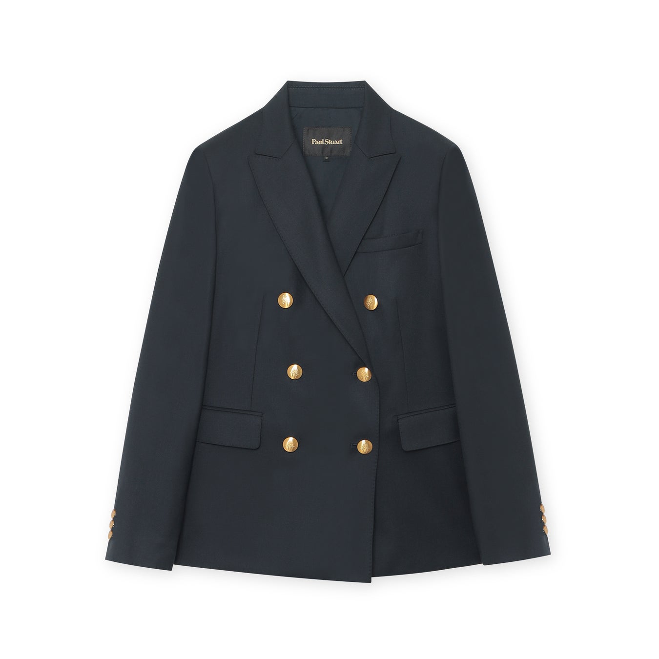 ダブルブレストデザインのブレザーです。「ドーメル」社製の上質なピュアウールを使用し、ほどよいハリ感と光沢のある質感が特徴。メンズのテーラードから着想を得たボクシーなシルエットですが、体形を美しく見せる自然なウエストラインを表現することで幅広いスタイリングをお楽しみいただけます。通気性に優れ、オールシーズン着用が可能です。