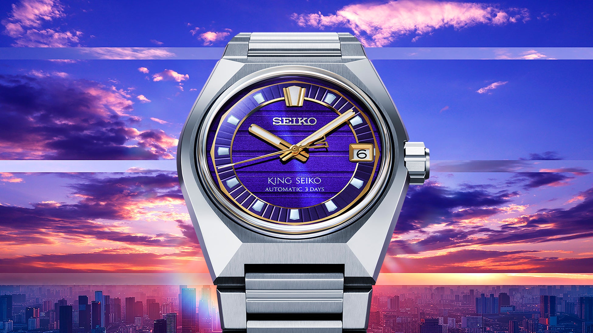 レギュラーモデル3種は、時間の移ろいによって変化する、現代の東京の景色をダイヤルで表現しました。それぞれ「夕暮れ時」「真夜中」「日の出」を表現した、パープル、ネイビー、シルバーの3色のダイヤルをそろえています。そして、セイコーブティック専用モデルは燦燦と光が降り注ぐ東京の景色からインスピレーションを得たアイスブルーのダイヤルカラーを採用しました。さらに、数量限定のゴールドカラーダイヤルモデルは、東京の広大な地平線から昇る荘厳な朝日をモチーフにし、ダイヤルのセイコーロゴと裏ぶたのキングセイコーのロゴもゴールドに揃えています。