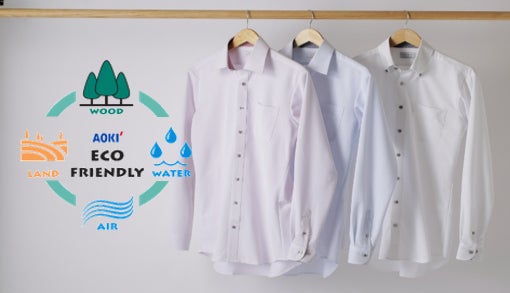地球環境に配慮した「AOKIエコフレンドリー®」商品から循環型リサイクルポリエステル素材「RENU®」を使用したサスティナブルシャツを新発売!!