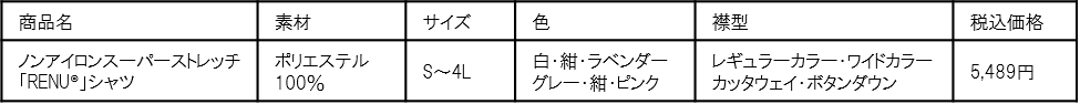 - ノンアイロンスーパーストレッチ「RENU®」シャツ商品特長