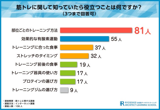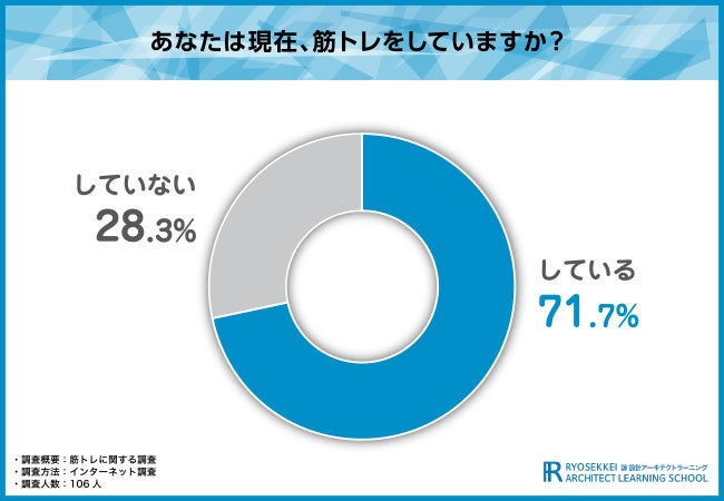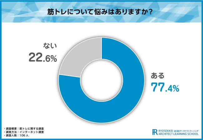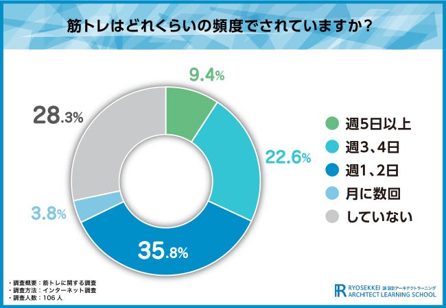 そこで今回、通信教育講座『諒設計アーキテクトラーニング』(https://www.designlearn.co.jp/)を運営する株式会社新生技術開発研究所は、全国の男女106名を対象に、「筋トレ」に関する調査を実施しました。