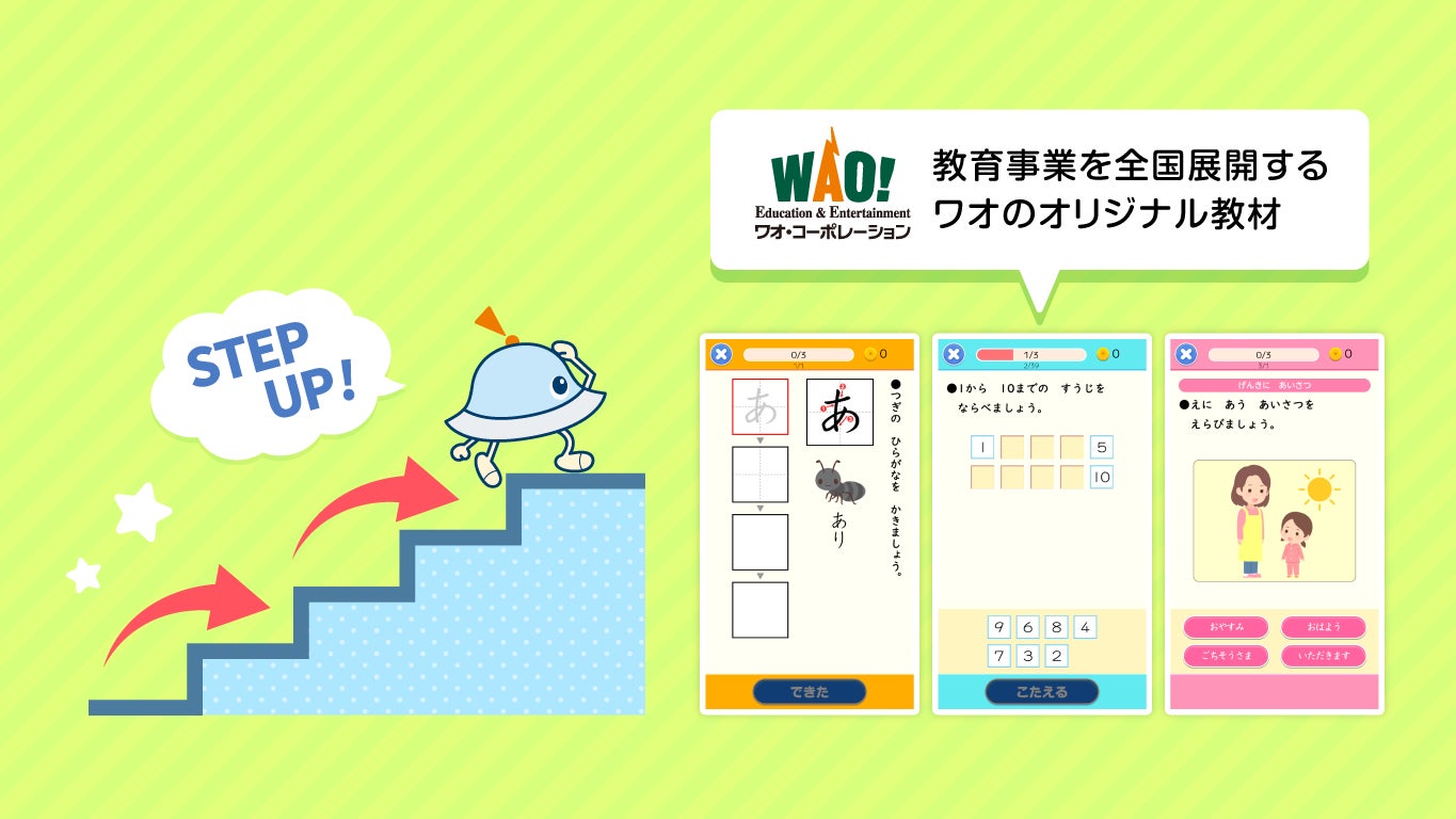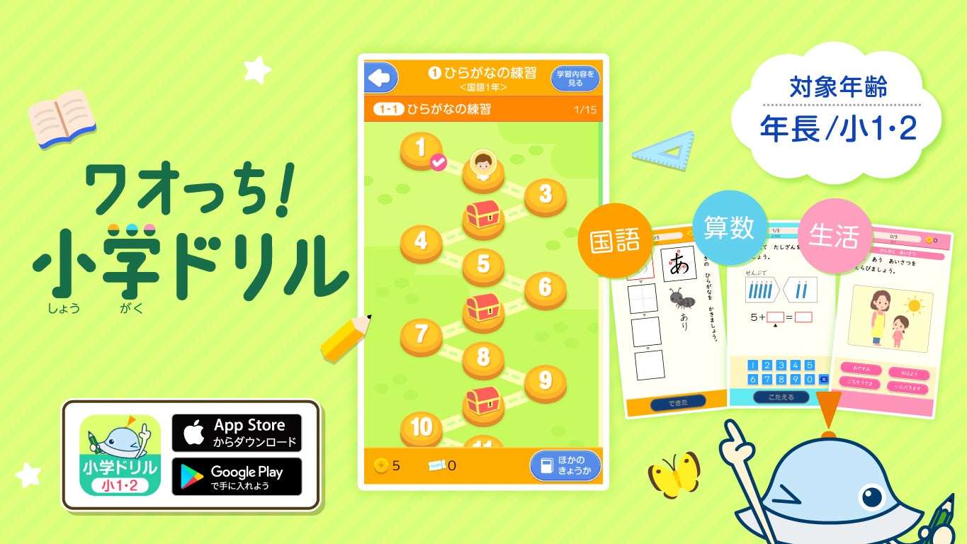 『ワオっち!小学ドリル』は、未就学児の就学準備から、小学1年〜小学2年のお子さまの家庭学習に最適なアプリです。独自のスモールステップ教材で、無理なく効果的に学習できます。