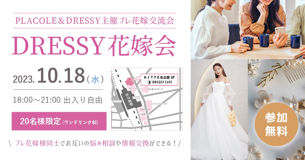 【10/18(水)限定開催!】PLACOLE&DRESSY主催のプレ花嫁座談会が名古屋DRESSY CAFEで開催決定