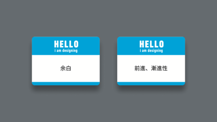 ネームカードは、「Hello!私がデザインしているものは×××です」など、自分のデザイン観などを簡潔に言語化することにより、カジュアルな自己紹介などにご活用いただけます。