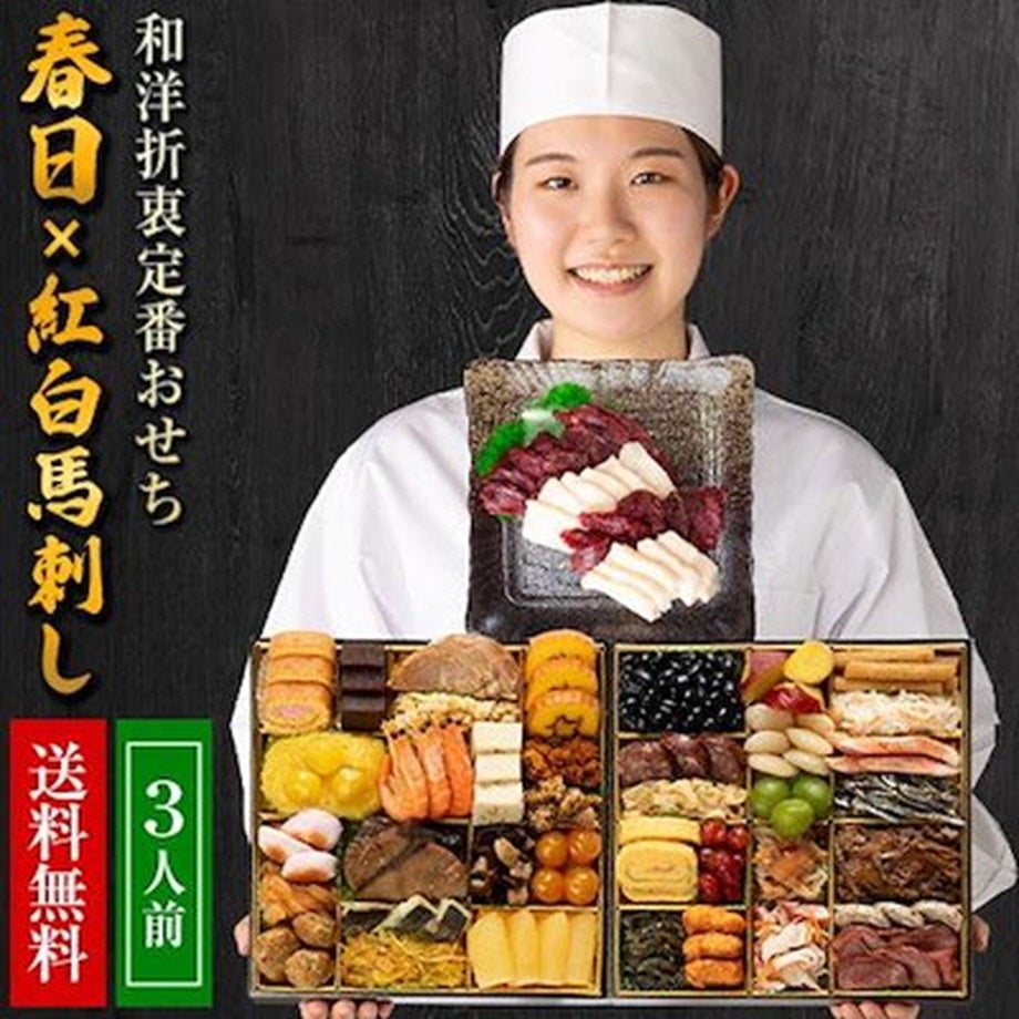 39品目の料理が詰まったボリューム満点のおせちに、さらに熊本県の名産品として知られる馬刺しが付いた豪華版!