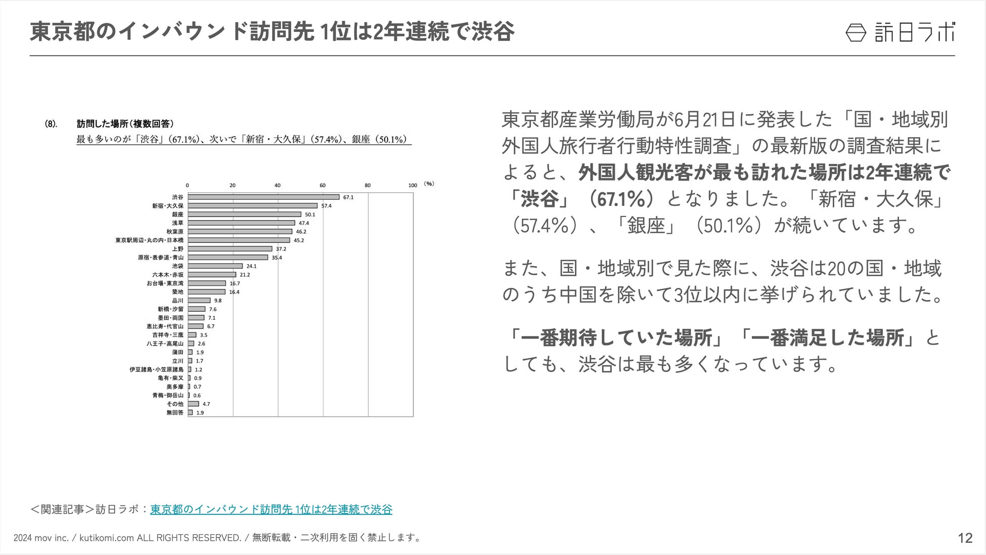東京都のインバウンド訪問先 1位は2年連続で渋谷