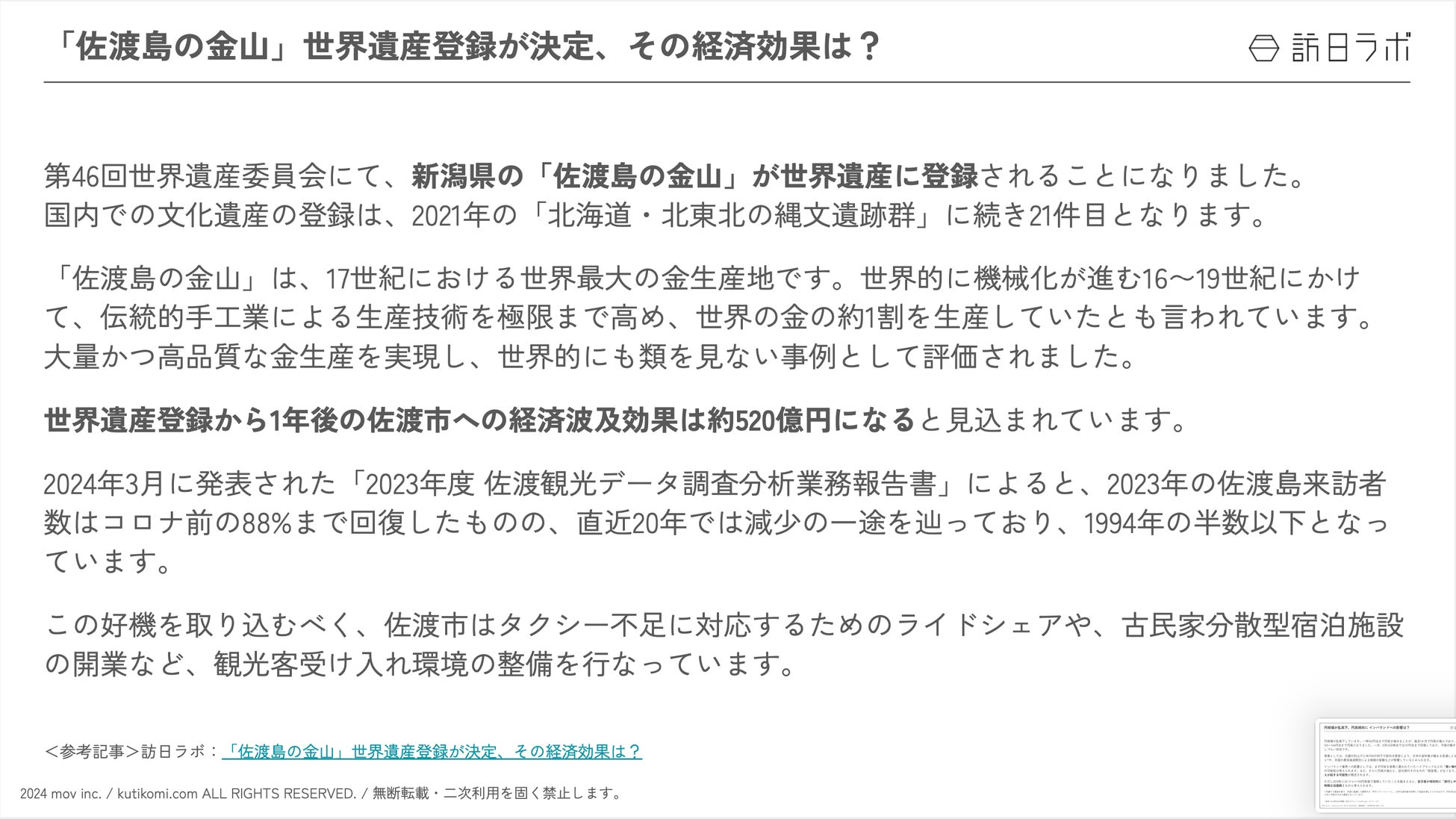 「佐渡島の金山」世界遺産登録が決定、その経済効果は?