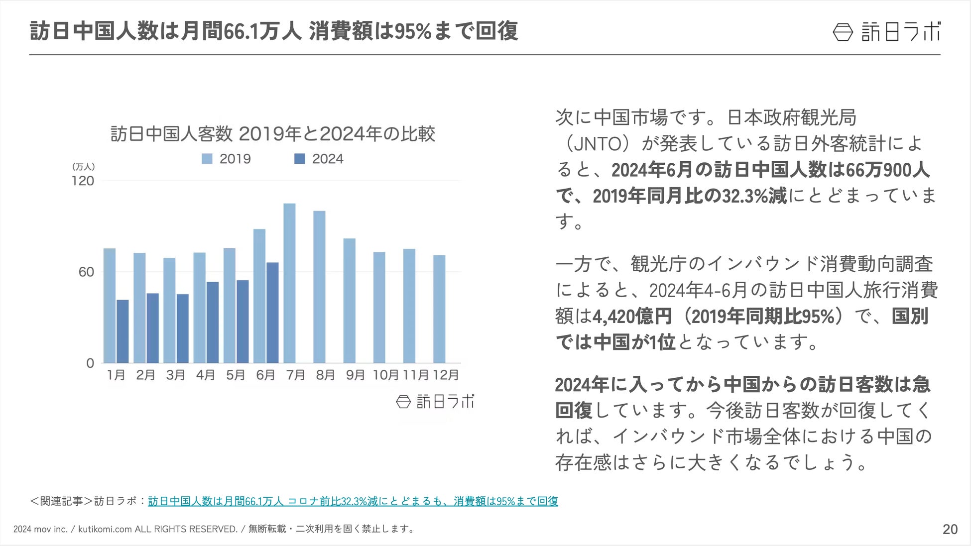 ほかにも「『佐渡島の金山』世界遺産登録が決定、その経済効果は?」「訪日中国人数は月間66.1万人 消費額は95%まで回復」など インバウンド担当者必見の情報を1本のレポートに凝縮!
