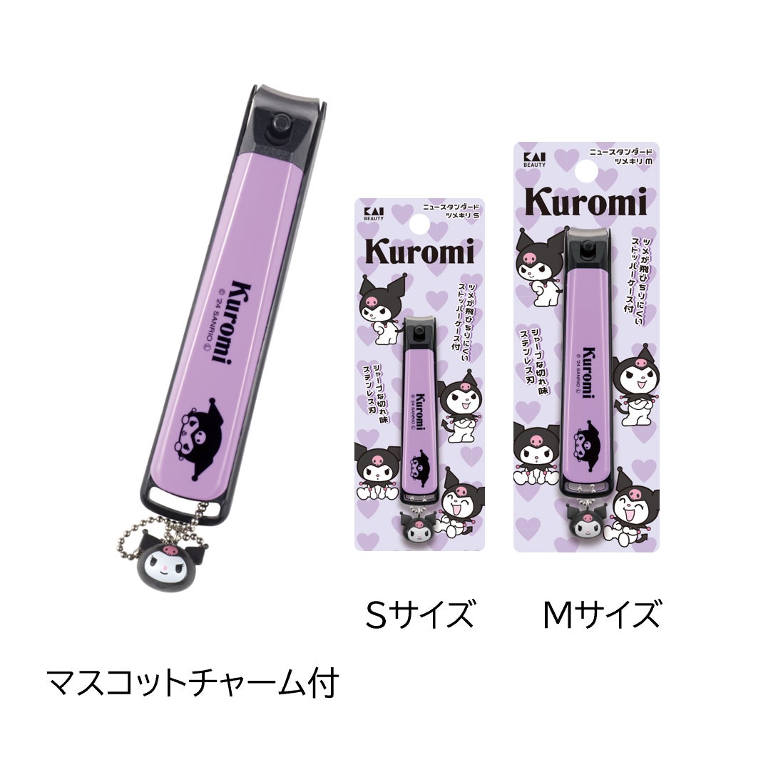 今回のコラボレーションでは、シナモロールとクロミのかわいいデザインのニュースタンダードツメキリにマスコットチャーム付き。持ち運びに便利なSサイズと手なじみの良いMサイズの2サイズの展開です。貝印は、ツメキリ国内シェアNo.1※でサイズ、形状、用途別に400種類以上を揃えています。今回のコラボレーション商品である「ニュースタンダードツメキリ」は、シャープな切れ味が特徴で、デザインの可愛さだけでなく実用性にも優れた商品です。