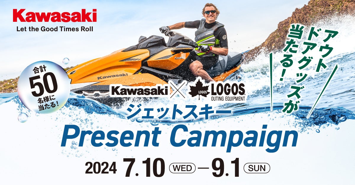 株式会社カワサキモータースジャパン(本社:兵庫県明石市、代表取締役社長:佐伯 健児)は、期間中ご応募いただいた方の中から抽選で合計50名に、カワサキとLOGOSがコラボしたアウトドアグッズをプレゼントする「Kawasaki×LOGOS ジェットスキープレゼントキャンペーン」を実施いたします。