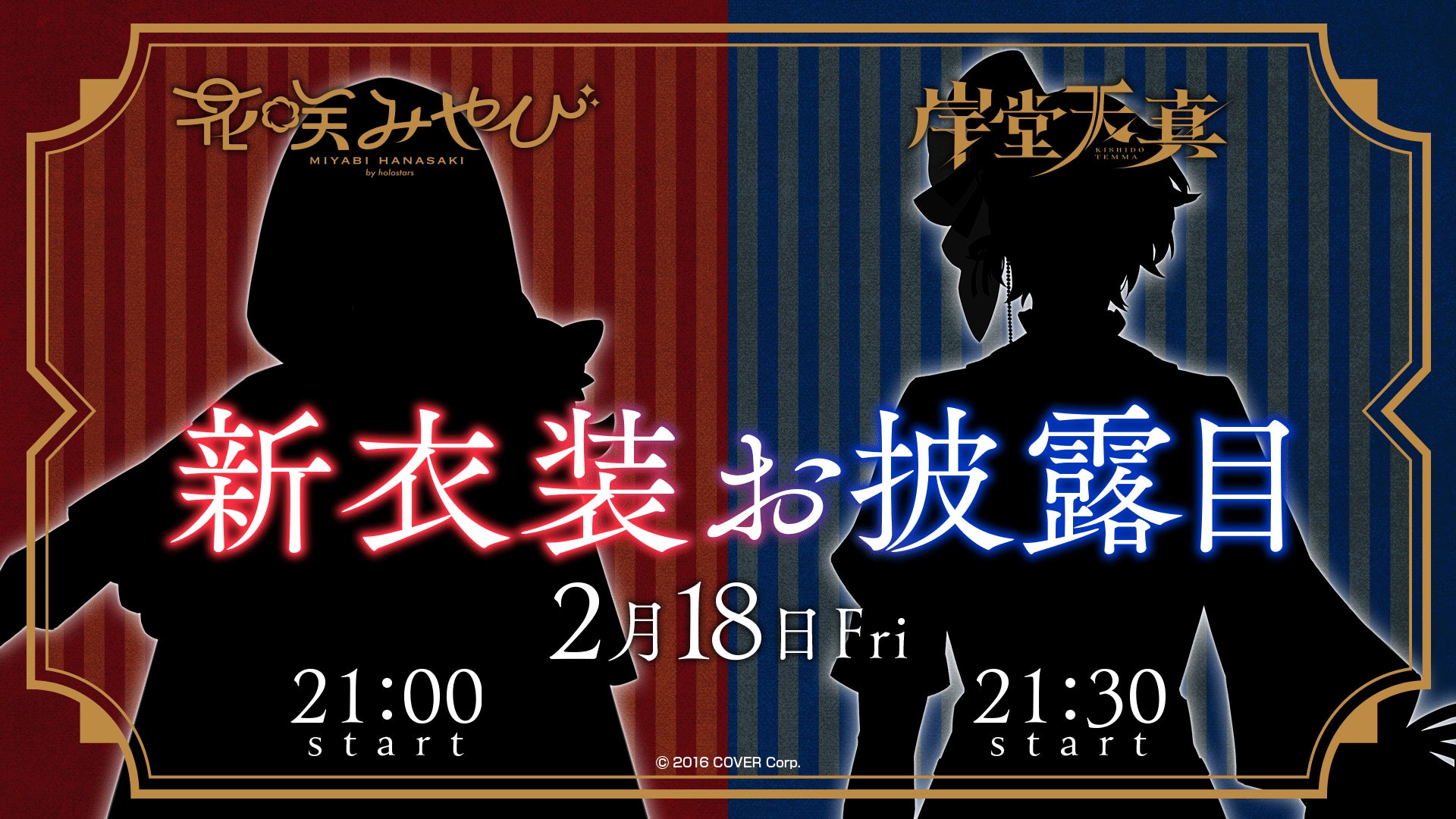 カバー株式会社(本社:東京都千代田区、代表取締役社長:谷郷元昭)は、当社が運営する「ホロライブプロダクション」傘下の男性VTuberグループ「ホロスターズ」において、所属VTuber「花咲みやび」「岸堂天真」2名の新衣装お披露目リレー配信を、2022年2月18日(金)にそれぞれ本人のYouTubeチャンネルにて実施することをお知らせいたします。