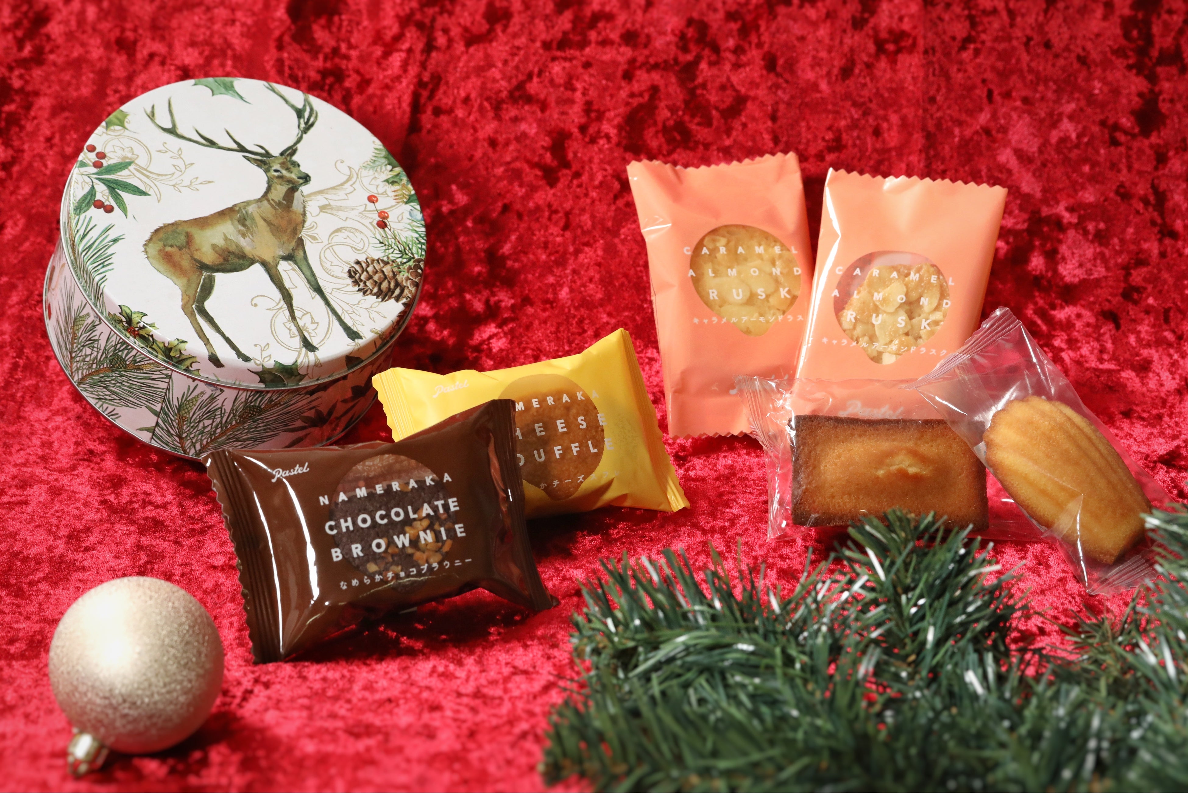 焼き菓子詰め合わせセットは、トナカイのイラストが可愛らしい「クリスマススイーツ缶」、ツリーの形の「クリスマスツリーギフト」、プチギフトにもおすすめな「プチバッグギフト」をご用意しております。