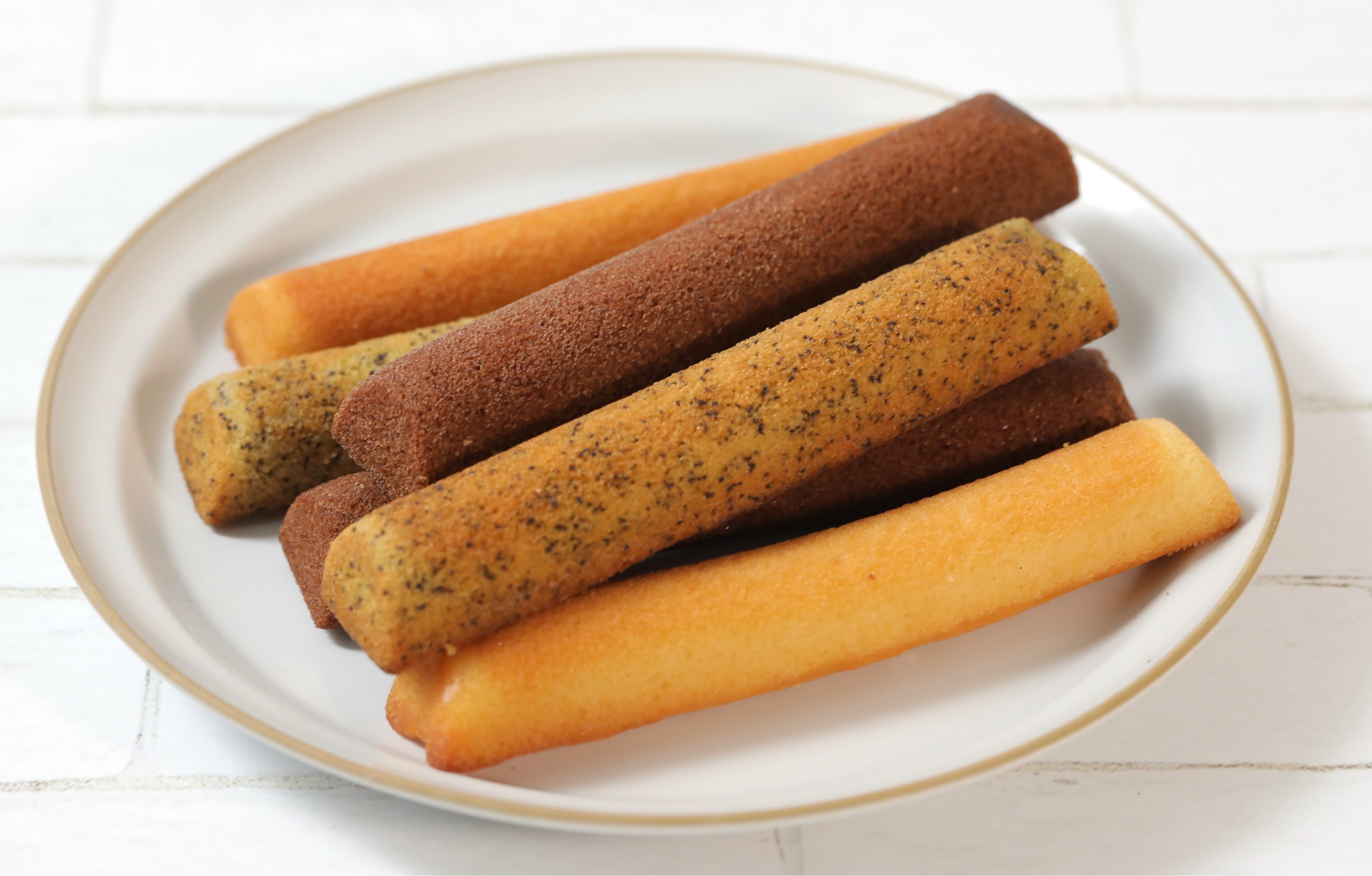 人気の「キャラメルアーモンドラスク」や「なめらかチーズスフレ」、「なめらかチョコブラウニー」に加えて、プレーン、ココア、アールグレイの3つの味わいがお楽しみいただける「スティックフィナンシェ」のセットです。