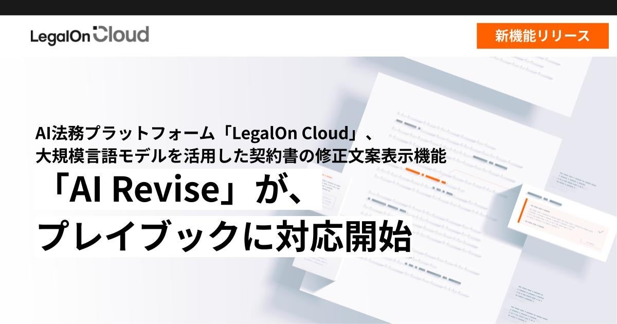 株式会社LegalOn Technologies(本社:東京都渋谷区、代表取締役 執行役員・CEO:角田 望)が提供するAI法務プラットフォーム「LegalOn Cloud」( https://www.legalon-cloud.com/)搭載の大規模言語モデルを活用した契約書の修正文案表示機能「AI Revise」がプレイブックに対応開始しました。これにより、各企業が独自に設定したレビュー基準をもとに自動で修正文案を生成し、修正することが可能になります。