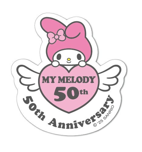 マイメロディのアニバーサリーイヤーを記念して、1月8日(水)から、全国のサンリオ直営店・百貨店のサンリオコーナー、サンリオオンラインショップ(本店・楽天市場店・Yahoo!ショッピング店)にて、1,100円(税込み)お買い上げごとにおひとつ(最大2つまで)「マイメロディ50周年ステッカー」をプレゼントします。アニバーサリーロゴがデザインされたステッカーになっております。