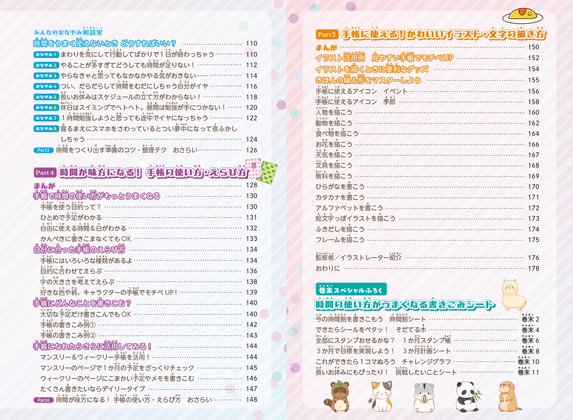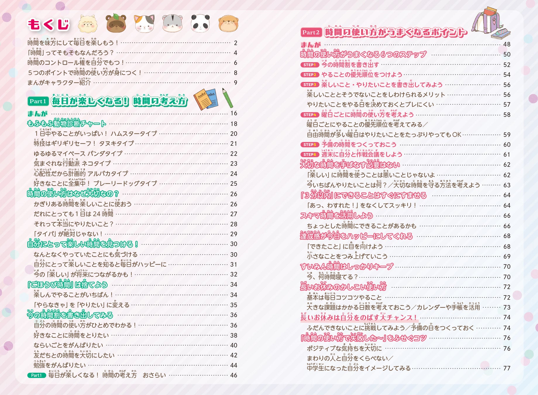 巻末特別ふろくには、自分の時間割や計画を立てられる切り取って使える「時間の使い方がうまくなる書き込みシート」を掲載。目標達成が目に見えるよ!時間を味方にして毎日を楽しもう!