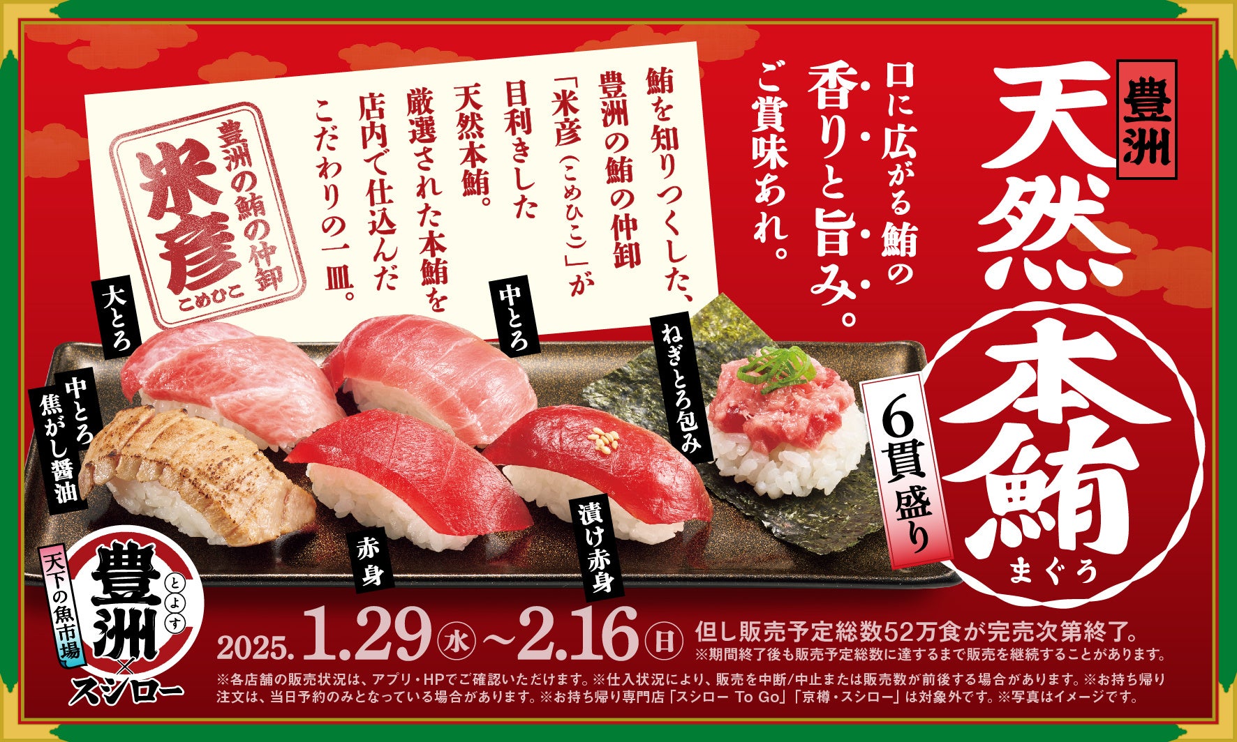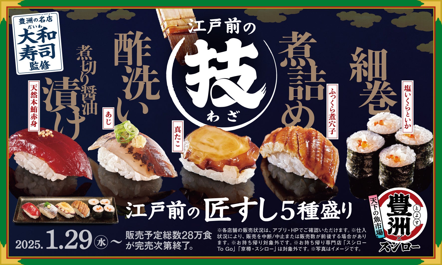 株式会社あきんどスシロー(本社:大阪府吹田市、代表取締役社長:新居 耕平)は、豊洲の目利きと江戸前の技を楽しめる、『天下の魚市場 豊洲×スシロー』を1月29日(水)より全国のスシローにて開催いたします。