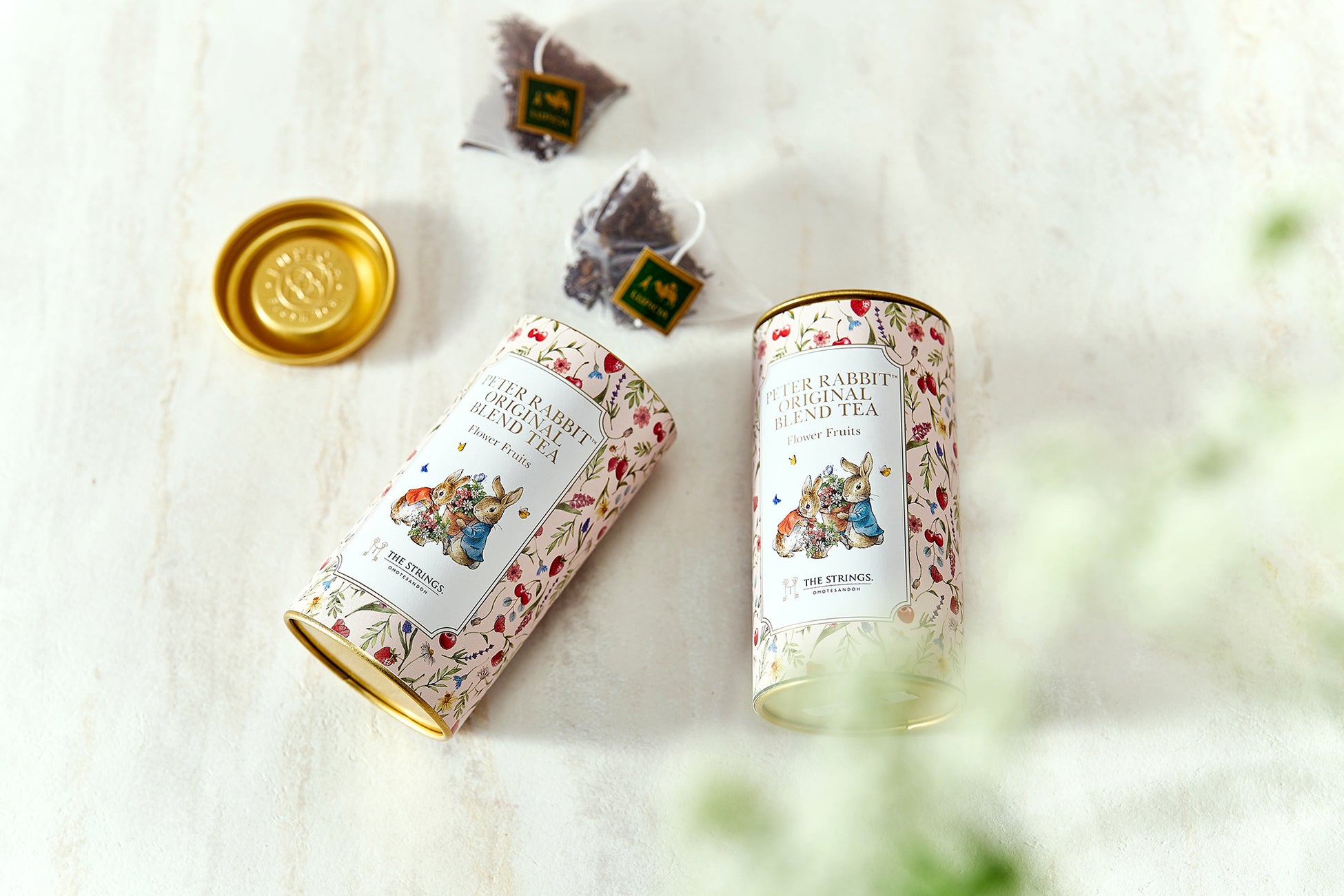 さらに、ピーターラビット™×ザ ストリングス 表参道のオリジナルブレンドギフトティーも登場。花やフルーツをテーマに作成したオリジナルのフルーツフレーバードティーを、メニューとともにご提供いたします。また、ご自宅でもお楽しみいただけるよう愛らしい紅茶缶に入れ、テイクアウトとプラン限定で販売いたします。