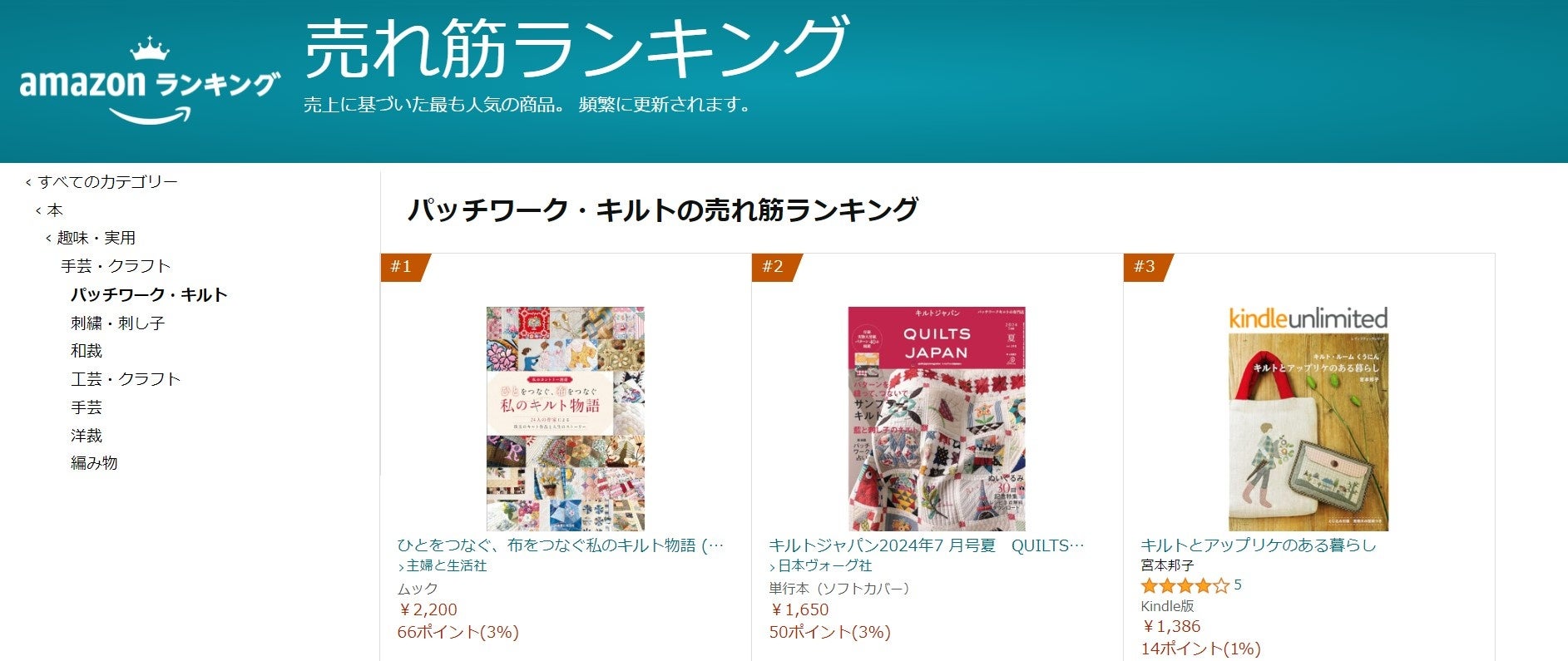 ※Amazon売れ筋ランキング 本/パッチワーク・キルト部門で1位を獲得しました!(2024.6.1付)