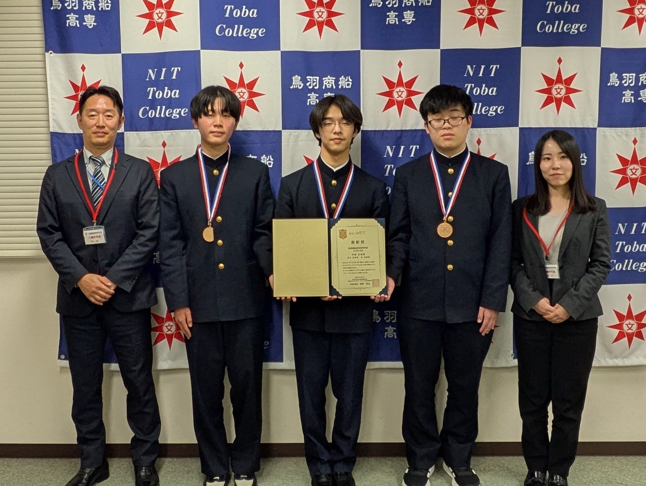 鳥羽商船高等専門学校(三重県鳥羽市、校長:古山雄一、以下「鳥羽商船高専」)情報機械システム工学科の学生3名によるビジネスプランが、日本政策金融公庫が主催する「第13回高校生ビジネスプラン・グランプリ ベスト100」に選出されました。これに伴い、令和7年12月18日(木)、表彰式が行われ、日本政策金融公庫伊勢支店長より表彰状とメダルが授与されました。鳥羽商船高専からのベスト100選出は2年連続で、今回は三重県から唯一の選出です。