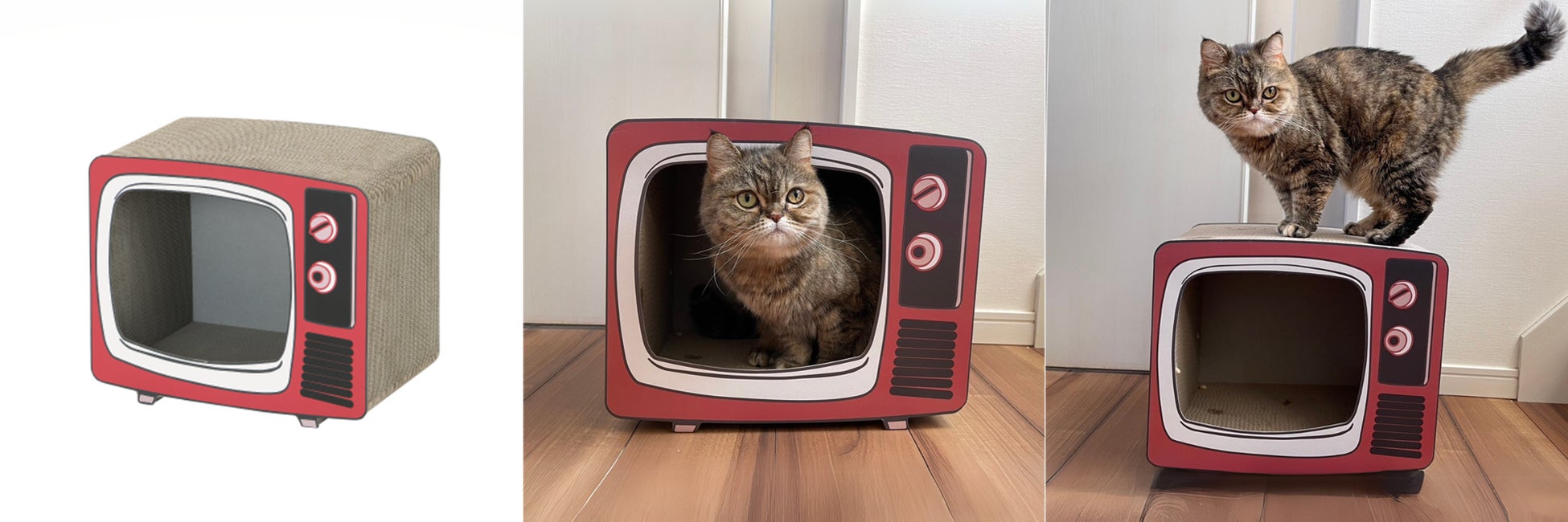 レトロなテレビがモチーフの爪とぎです。猫ちゃんがテレビの中でポーズを決めたら、シャッターチャンス!