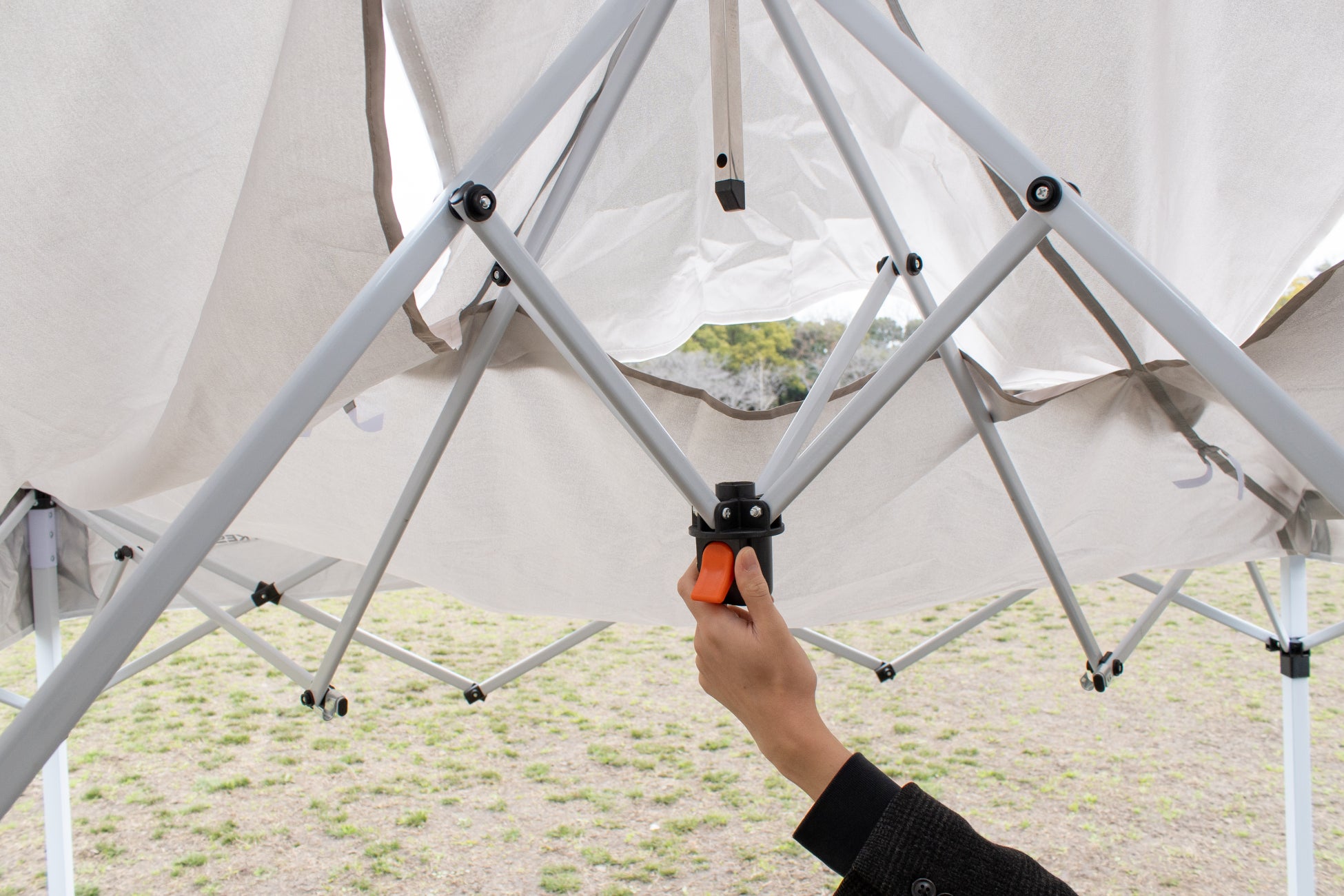 本製品は、従来のタープテントに比べて設営の手間を大幅に軽減。
