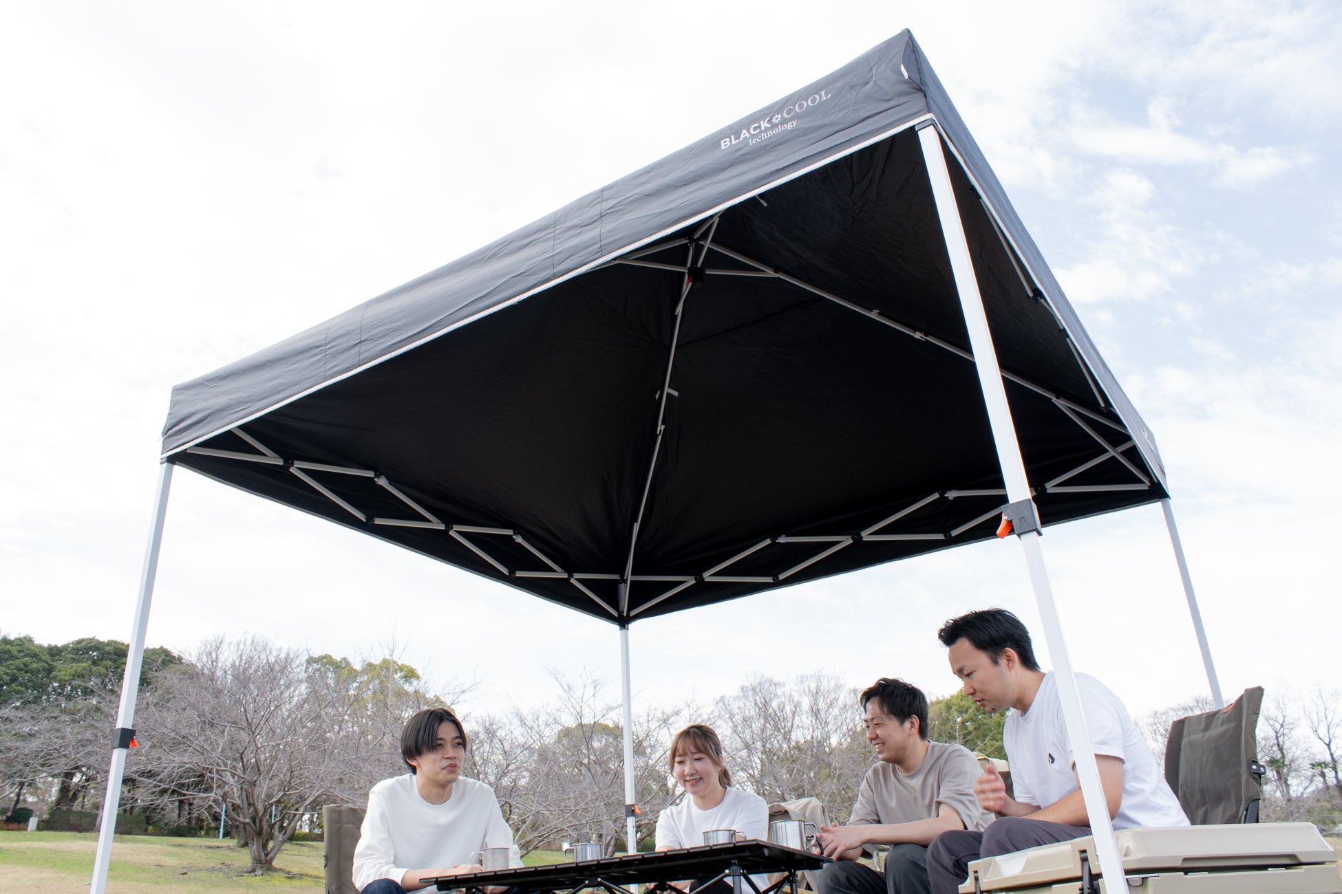即完売した楽天ランキング1位の人気タープテントが、設営わずか60秒で完了するワンタッチ構造と高い遮光・遮熱性を施した高機能仕様で待望の再入荷、楽天・Amazon・Yahooで通常販売再開。