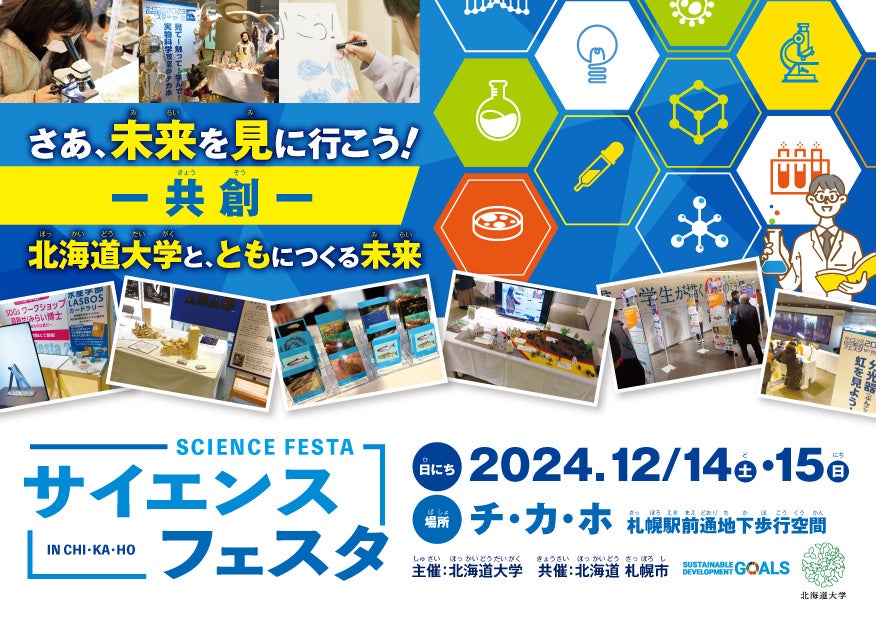 北海道は、北海道大学及び札幌市と共催して、12/14(土)~15(日)に科学体験イベント「サイエンスフェスタ2024」を開催します!