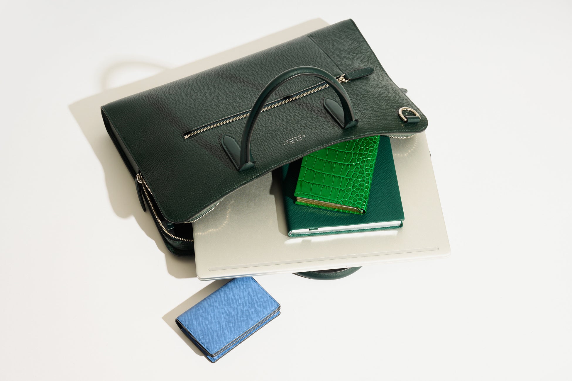 スマイソンのクラッシックなブリーフケースにスリムなスタイルが登場。13インチのノートパソコンに加え、ノートや書類なども十分に収納が可能。実用性を損なうことなく、男性はもちろんのこと、女性が持つにも丁度良いサイズ感です。