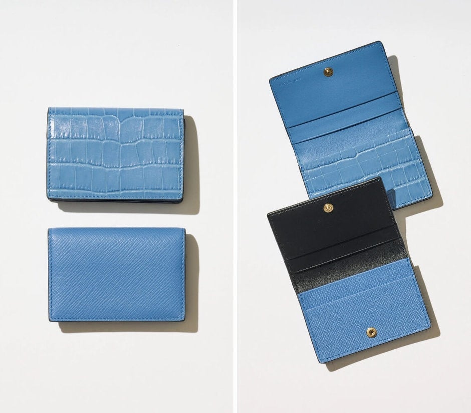 スマイソンの名刺入れは上質なレザーの質感が際立ち、シンプルで洗練されたデザインは大事なビジネスシーンに最適です。ミニマルなデザインながら、機能性に優れ、内側にも外側にもスリップポケットが付いています。
